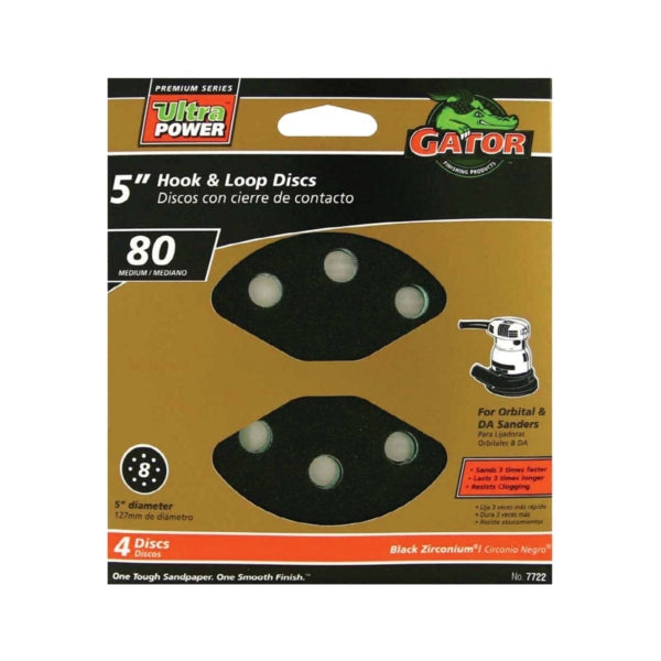 Gator 5" random orbit sanding discs provide superior finishing results and good value. These Red Resin discs are specifically designed for power tool use as they resist heat build-up and humidity for longer life. The quick change hook & loop holding system allows for easier & faster disc changing. The hole vented pattern takes full advantage of the sander's dust collection systems keeping your work area cleaner.